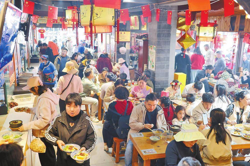 r夜幕驾临,昆明的夜生涯才刚刚启动。南强街巷等夜间文旅耗尽汇注区延迟贸易时分,用好意思食、演艺留下搭客的脚步。如火如荼的小吃摊前,列队的搭客联翩而至;老字号餐厅里,滇菜香气与欢悦声交汇。