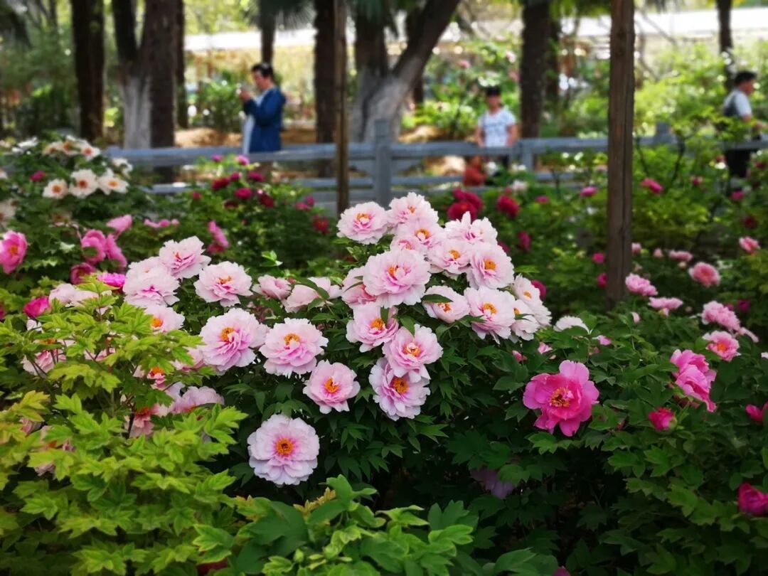 这里的牡丹花色奇绝,红、白、粉、黄、紫、蓝、绿……种种阵势令东谈主目不暇接,实乃雍容富贵,国色天香。