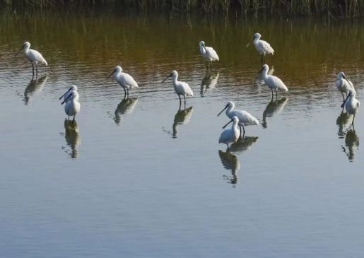 现在,湿地公园已收录鸟类19目54科218种。东方白鹳、白头鹤、黑嘴鸥、黑脸琵鹭、卷羽鹈鹕等国度一级保护鸟类接连现身。常见鸟类包括苍鹭、白鹭、戴胜、翠鸟、斑嘴鸭等。园内在一线海滩、二线海塘、不雅鸟塔等点位竖立了自助千里镜,可供旅客不雅赏湿地鸟类。