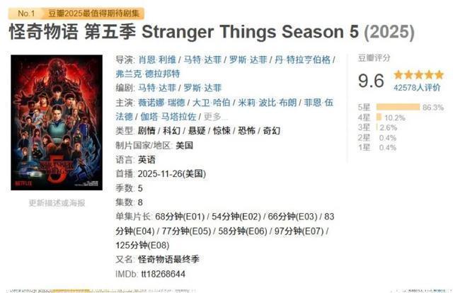 偶然《怪奇物语》果然像《哈利·波特》一样,兑现了等于兑现了,念念了解第五季,乃至整个《怪奇物语》勾画出的霍金斯小镇六合,照旧需要时期回溯试吃一群孩子的成长经由。 作家|王重阳lp 剪辑|晶晶 排版|苏沫 《怪奇物语》第五季自11月26日在网飞(Netflix)上线以来,在网上讨论热度颇高。另外豆瓣评分目前已达到9.6,有网友暗意“很走时能谢世看到这种上等货”。