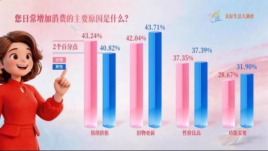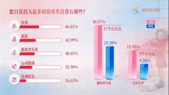 r是什么让女生心甘宁肯翻开钱包?“您平素加多耗尽的主要原因是什么”《好意思好生存大造访》的这个问题有了谜底:心绪价值!