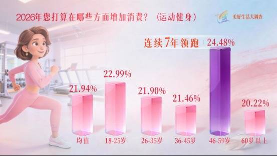 她们在躯壳责罚上莫得躺平,反而在通顺健身耗尽上展现了惊东说念主的韧性。尤其是具体到46-59岁这一群体发扬最为杰出,她们在通顺健身上的耗尽预期照旧聚合7年在各年事段女性中保握开端。她们买的不是装备,是回击岁月的底气,是掌控生存的力量。